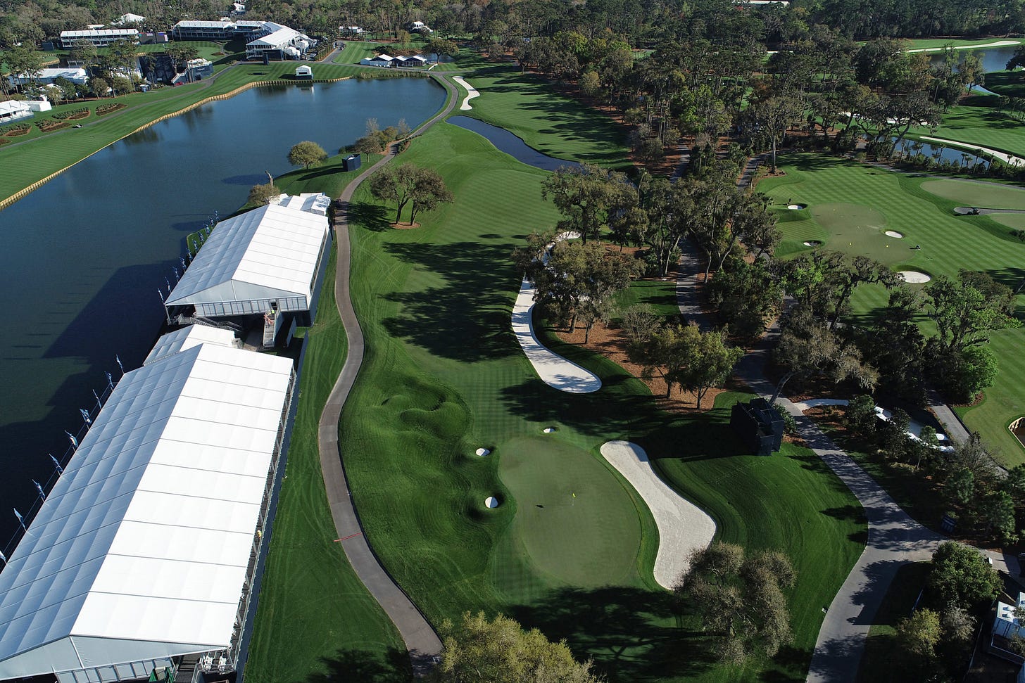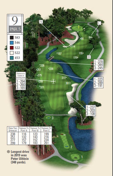 A fantastic example of this architecturally is the ninth hole. It’s not the longest par five that Tour players will face all year, but there is enough in it to trouble the best. The fairway is intersected by water that goes across it at an angle. This initially prevents players from bombing it as far as possible, especially the longer player, and not having to worry about the consequences.