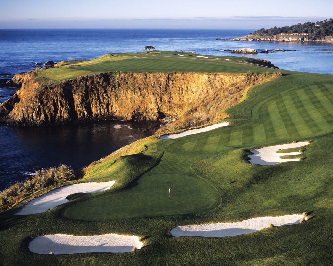 The last example I use for this broken fairway concept is far less man-made, but more a great use of existing land features. Pebble Beach is iconic for many reasons. The stretch of golf along the coast in particular is praised as “the greatest meeting of land and sea in the world” and though the seventh hole garnishes so many of the plaudits, what follows is equally, if not more, exhilarating.